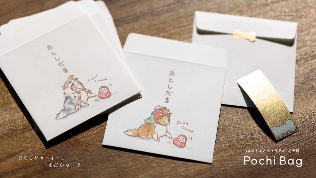だるまさんをちょんちょんしてるシェルティの、おとしだまポチ袋、新発売!
